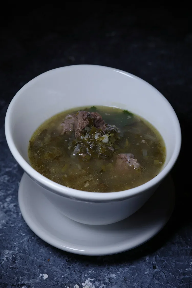 A vibrant Georgian specialty of tender lamb gently braised with tarragon, white wine, and fresh herbs, creating a bright, herbaceous broth with delicate acidity. Fragrant, soulful, and distinctly Georgian.